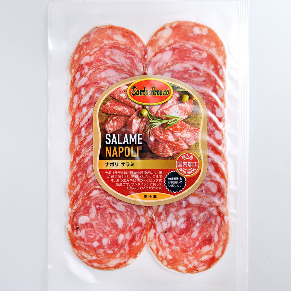 このサラミは伝統的なイタリアミラノタイプの輸入品です。お酒のおつまみとして使用されるのがメインです。スライスされているのでパンに挟んで召し上がるのもベストです。